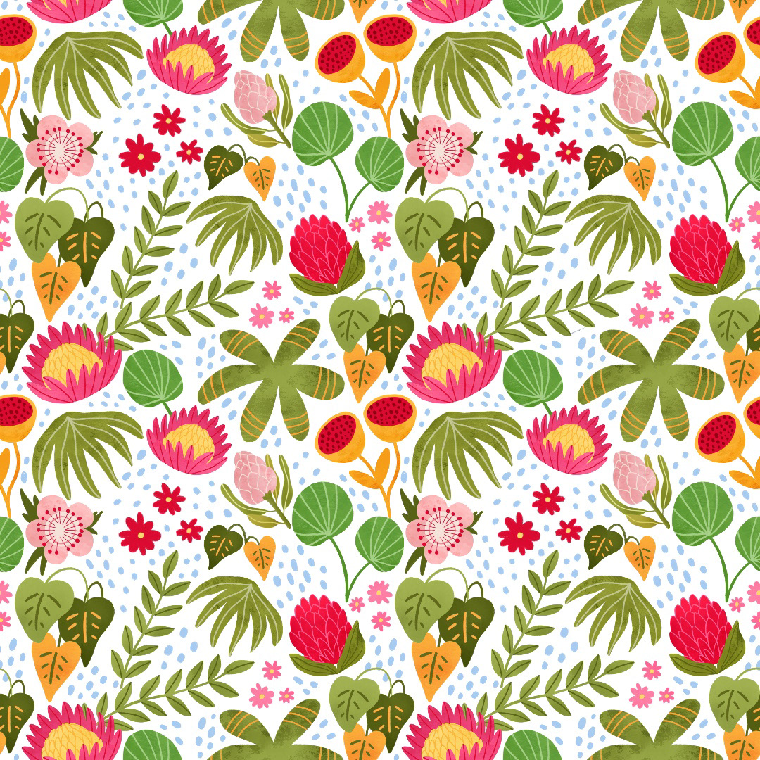 Bright floral pattern design with protea flower